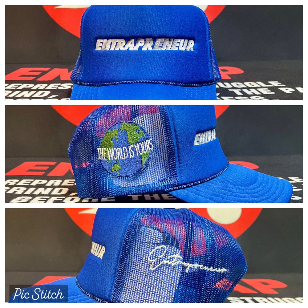 ENTRAPRENEUR® “Global Vision” Blue Trucker Hat